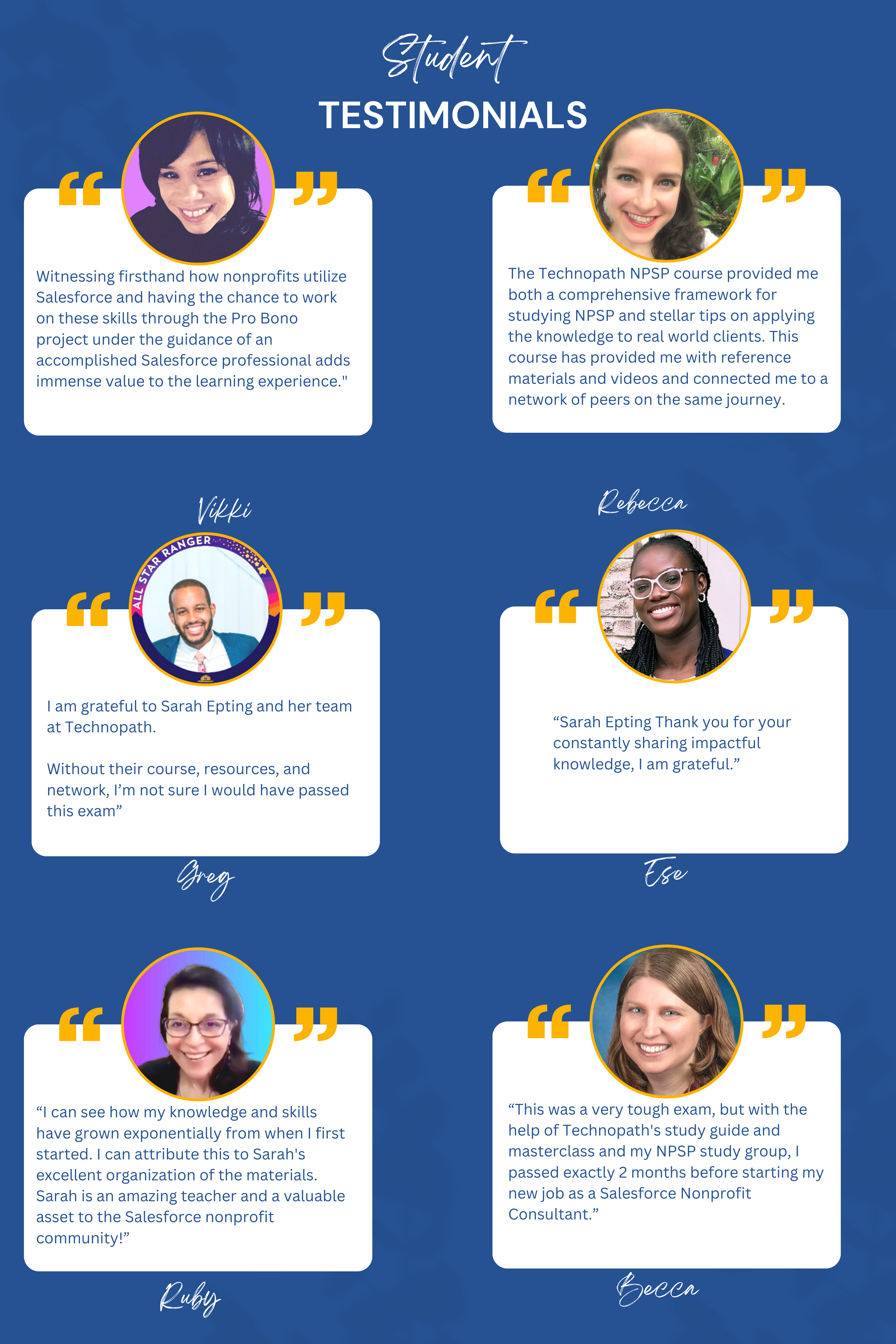 I'm Sarah Epting, the Founder and CEO of Technopath. I'm passionate about guiding both nonprofit professionals and future Salesforce Admins to harness the power of Salesforce to better their community.
